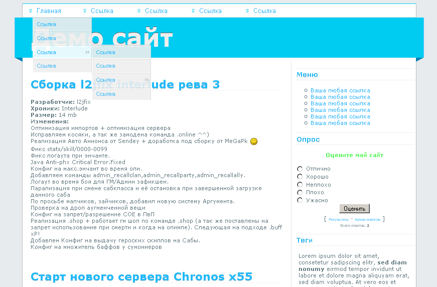 голубой шаблон для ucoz